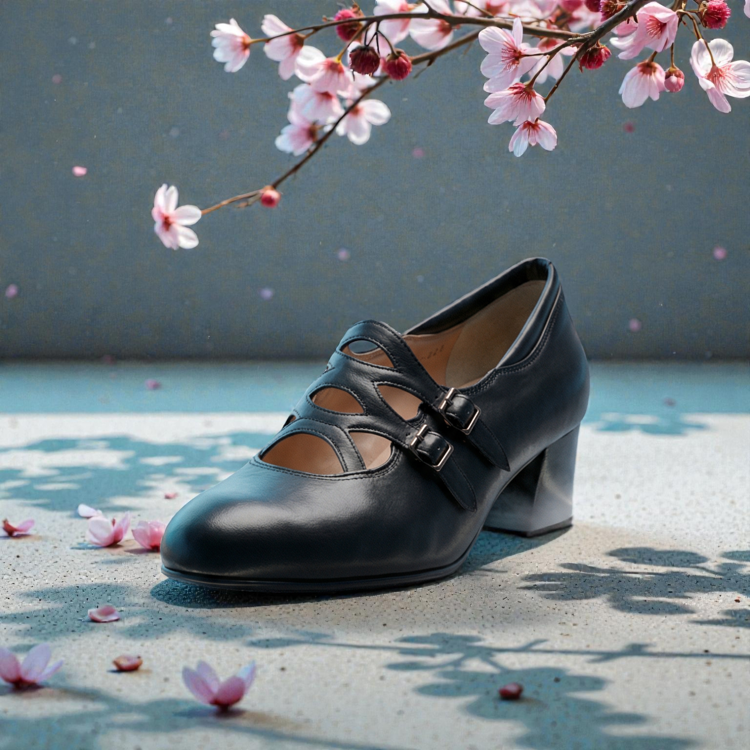 カットワーク ダブルバックルパンプス