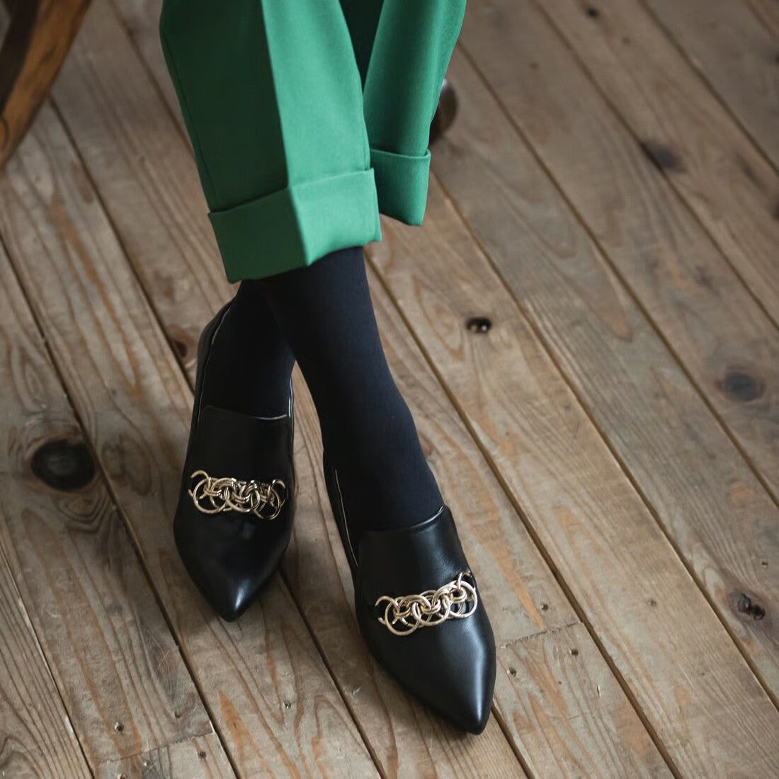 チェーンデザインシャーリングパンプス