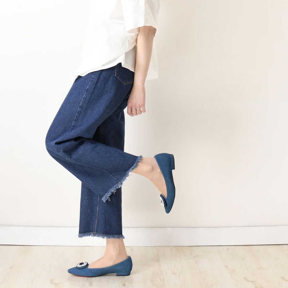 ビジューバックルフラットシューズ